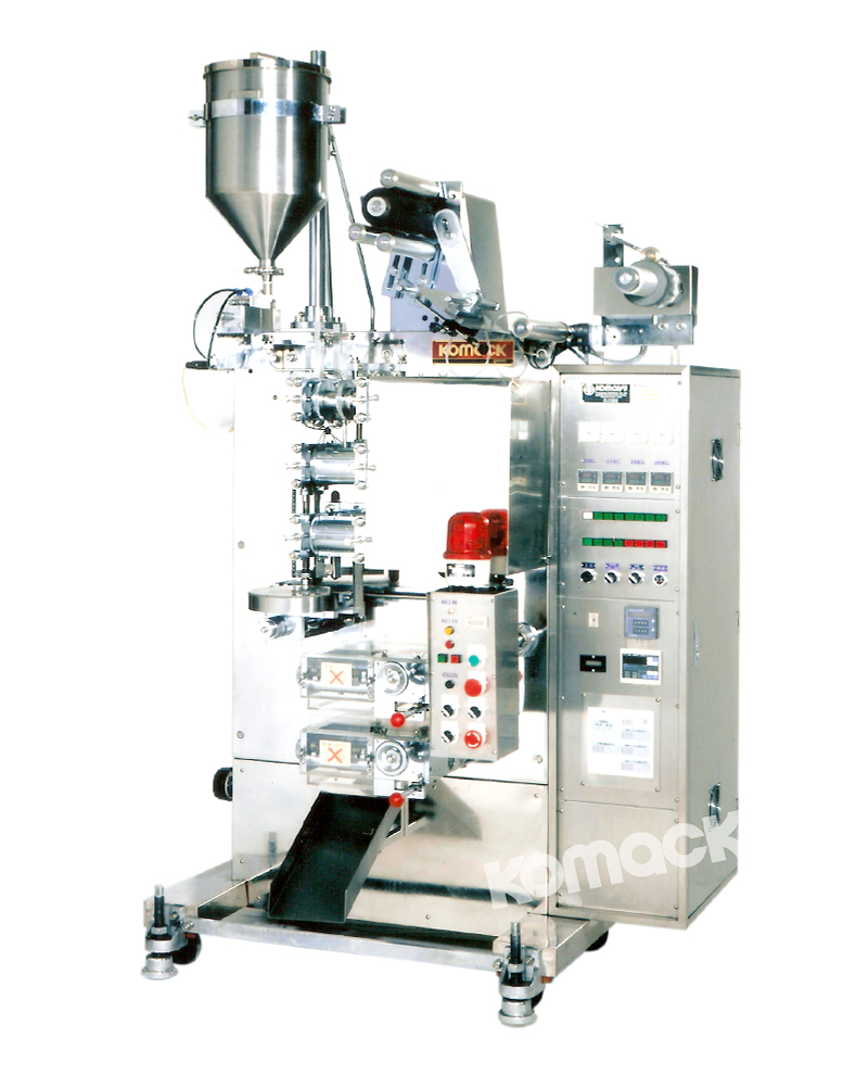 本機は粘體物?液體物包裝の型式機種の中で最も安定した実績のある包裝機です。特に3段ロール方式(1、2段目熱ロール?3段目に冷卻シールプレスロール裝備)を採用し、各種使用包材フィルムに対するシール安定性には抜群の効果が得られます。